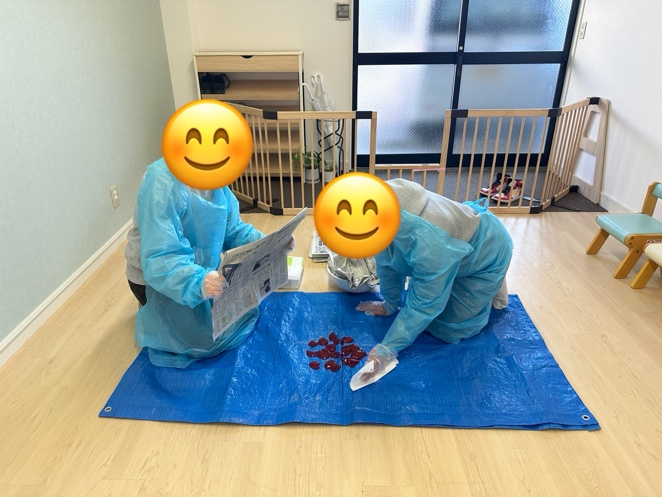 - 匂いや視覚刺激に敏感な他の児童に対し、「お隣の部屋で新しいおもちゃを見よう」と速やかに別室へ誘導。床の汚れを見せないよう配慮した。